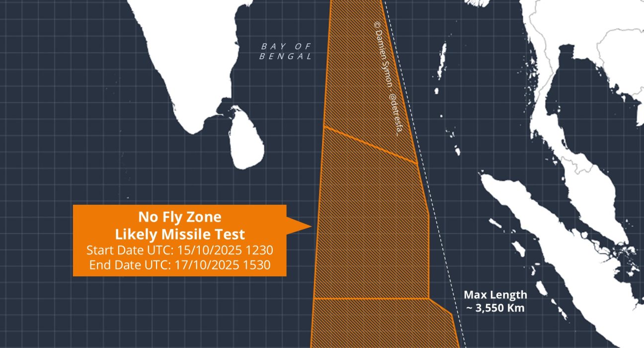 6 अक्टूबर को नोटम (नोटिस टू एयरमैन) जारी करते हुए इस परीक्षण के लिए नो फ्लाइंग जोन की रेंज 1480 किलोमीटर रखी गई थी. लेकिन अगले दिन इसकी रेंज 2520 किलोमीटर कर दी गई. फिर महज 22 घंटे में इसकी रेंज 3550 किलोमीटर कर दी गई. ऐसे में कयास उठ रहे हैं कि ये कौन सी मिसाइल हो सकती है.