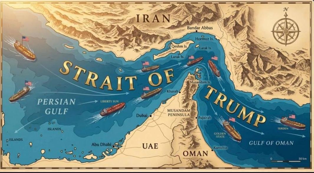 अमेरिकी राष्ट्रपति ट्रंप ने ट्रूथ सोशल पर स्ट्रेट ऑफ होर्मुज की एक तस्वीर शेयर की, इसमें स्ट्रेट ऑफ होर्मुज का नाम बदलकर स्ट्रेट ऑफ ट्रंप  कर दिया गया है. हालांकि इस तस्वीर के साथ ट्रंप ने कुछ लिखा नहीं, लेकिन बिना कुछ लिखे ही ट्रंप का मैसेज दुनिया को मिल गया है.